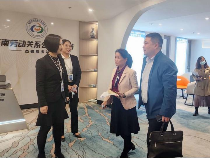 市人社局就業(yè)促進(jìn)科負(fù)責(zé)人劉剛和龍華區(qū)人社局局長陳明曉攜一行人先實(shí)地考察了??冢ń苠\)人力資源服務(wù)產(chǎn)業(yè)園和??诮苠\就業(yè)驛站,了解其規(guī)模布局、功能服務(wù)等情況。期間,還與海南就業(yè)驛站——??诮苠\人才就業(yè)服務(wù)站的工作人員進(jìn)行交談,了解2月10日在園區(qū)舉辦的“春風(fēng)行動(dòng)”招聘會(huì)的具體情況以及招聘會(huì)的成效。