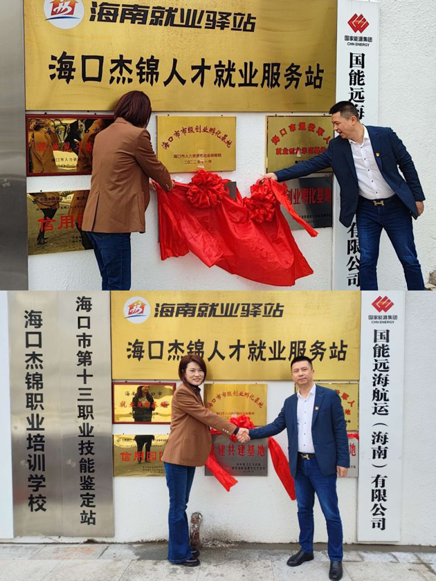 ??诮?jīng)濟(jì)學(xué)院時(shí)代旅航管理學(xué)院黨總支書記石洪凡和??谑校ń苠\)人力資源服務(wù)產(chǎn)業(yè)園總經(jīng)理劉昕暉共同揭牌。