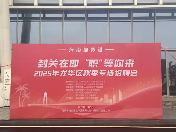 2025年11月5日上午,由??谑旋埲A區(qū)人力資源和社會(huì)保障局指導(dǎo),??谑校埲A)人力資源服務(wù)產(chǎn)業(yè)園主辦,杰錦(海南)人力資源服務(wù)有限公司承辦,??谑校ń苠\)創(chuàng)業(yè)孵化基地、海口杰錦人才就業(yè)服務(wù)站、海南省海才人力資源有限公司協(xié)辦,??跁?huì)展工場管理有限公司場地支持的封關(guān)在即,“職”等你來——2025年龍華區(qū)秋季專場招聘會(huì)在??跁?huì)展工場成功舉辦并圓滿落幕。